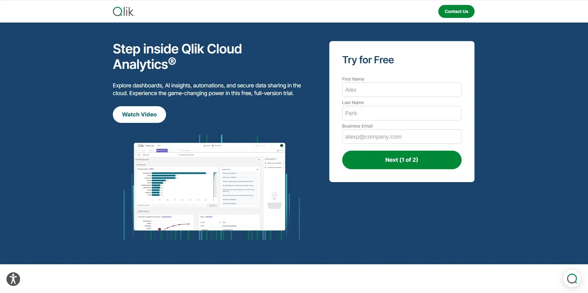 Top Features: Associative engine, AI-powered insights, interactive BI storytelling.