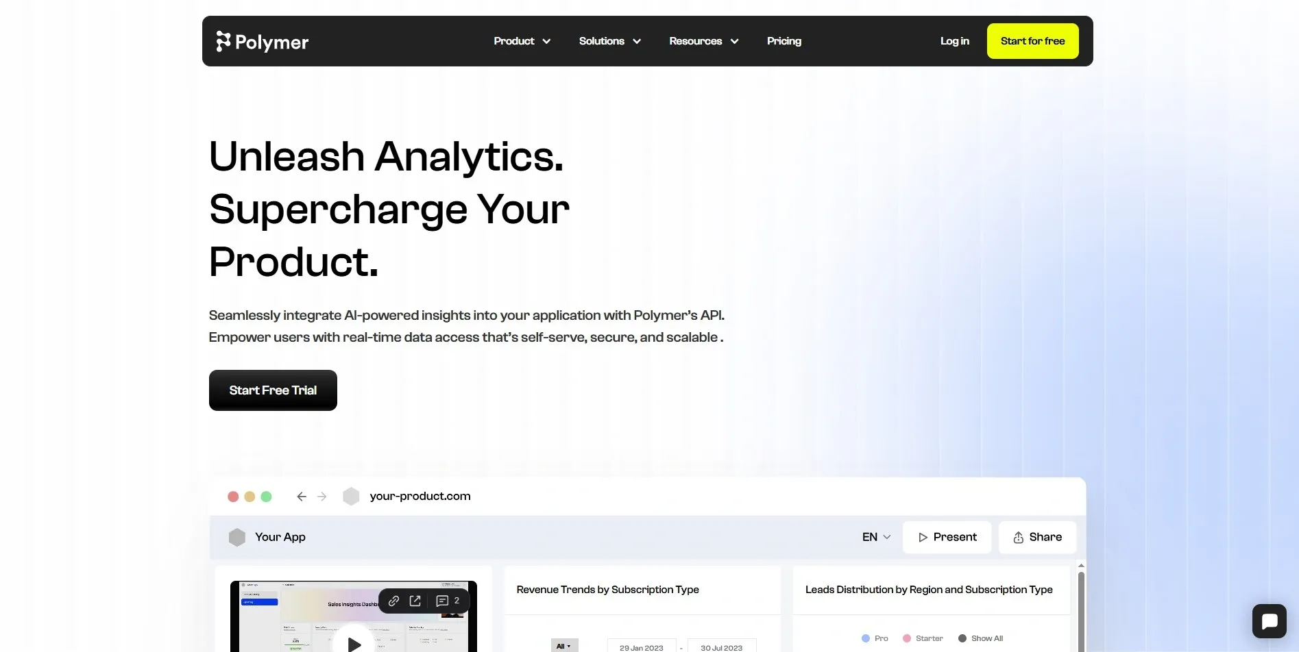 Polymer transforms spreadsheets into fully interactive dashboards automatically. You drag in your CSV or Google Sheet, and Polymer builds the visuals for you.