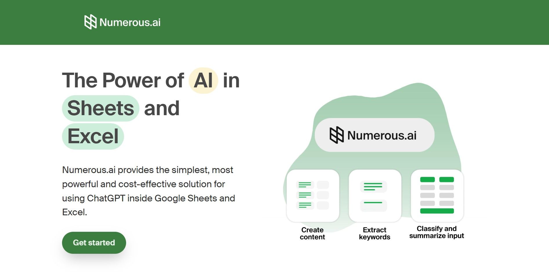 If you live inside spreadsheets, Numerous.ai feels like magic. It plugs directly into your existing workflow and lets you use AI prompts inside cells. This is one of the easiest tools to start using today, with no setup headaches and no new software to learn.