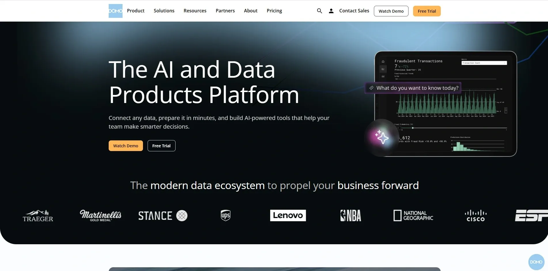 Domo is built for teams. It pulls data from hundreds of sources and turns them into live, shareable dashboards. Its AI layer, called Domo.AI, can summarize data, generate forecasts, and surface trends automatically.