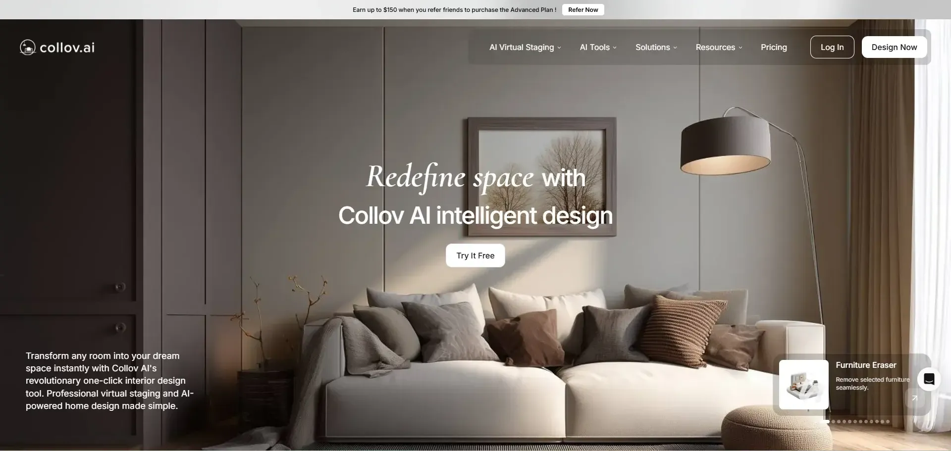 Collov.ai is widely used for AI-powered virtual staging. It helps real estate agents transform empty rooms into fully furnished spaces digitally, increasing property appeal and engagement in listings.
