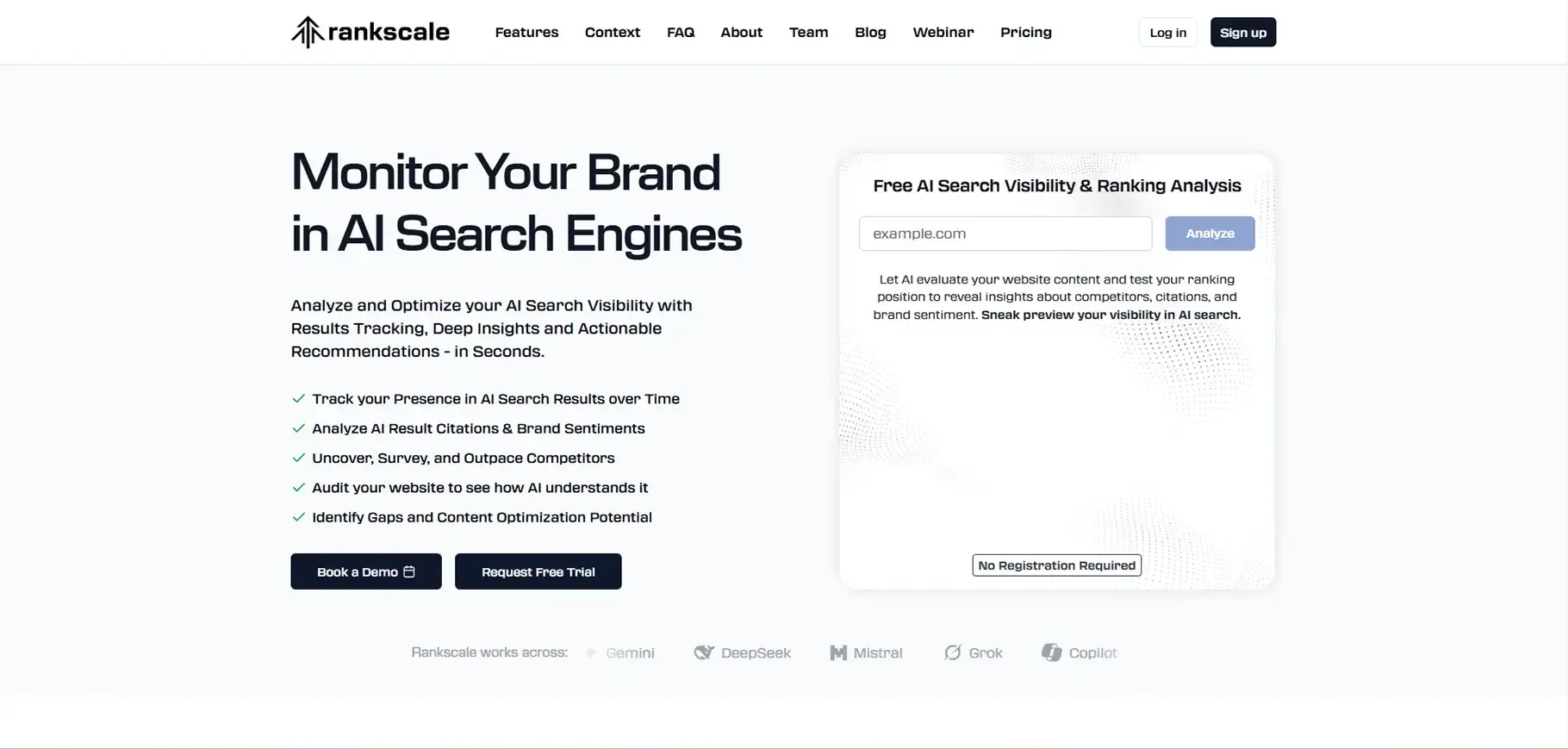 I will begin my analysis of Rankscale.ai by highlighting how it positions itself as a next-generation platform built specifically for modern, AI-driven search. Unlike traditional SEO tools that focus only on Google rankings, Rankscale.ai is designed to help brands track and improve their visibility across AI-powered search engines and answer platforms.